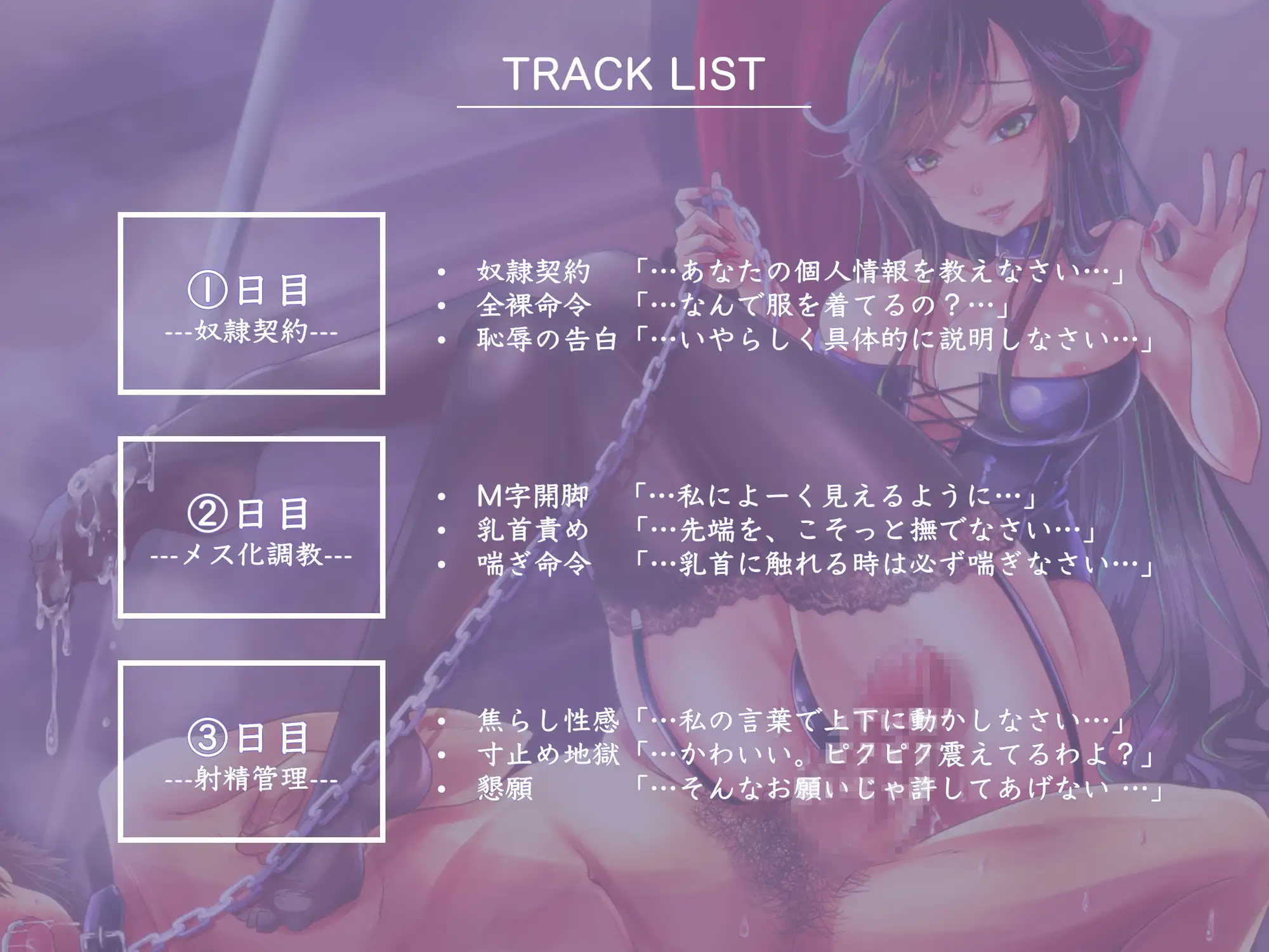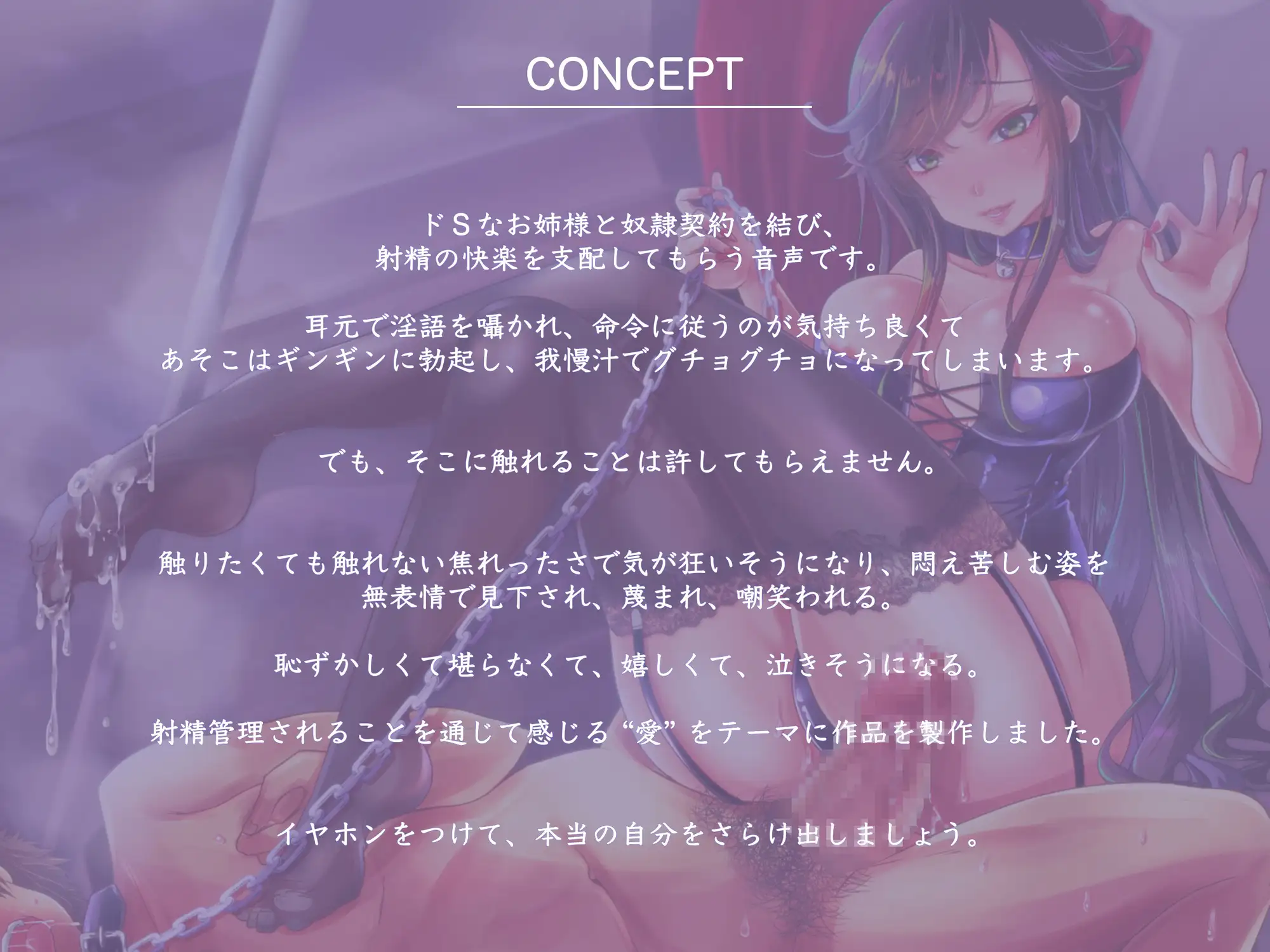 ジャンル | お姉さん,女王様/お姫様,SM,しつけ,言葉責め,羞恥/恥辱,焦らし,男性受け |