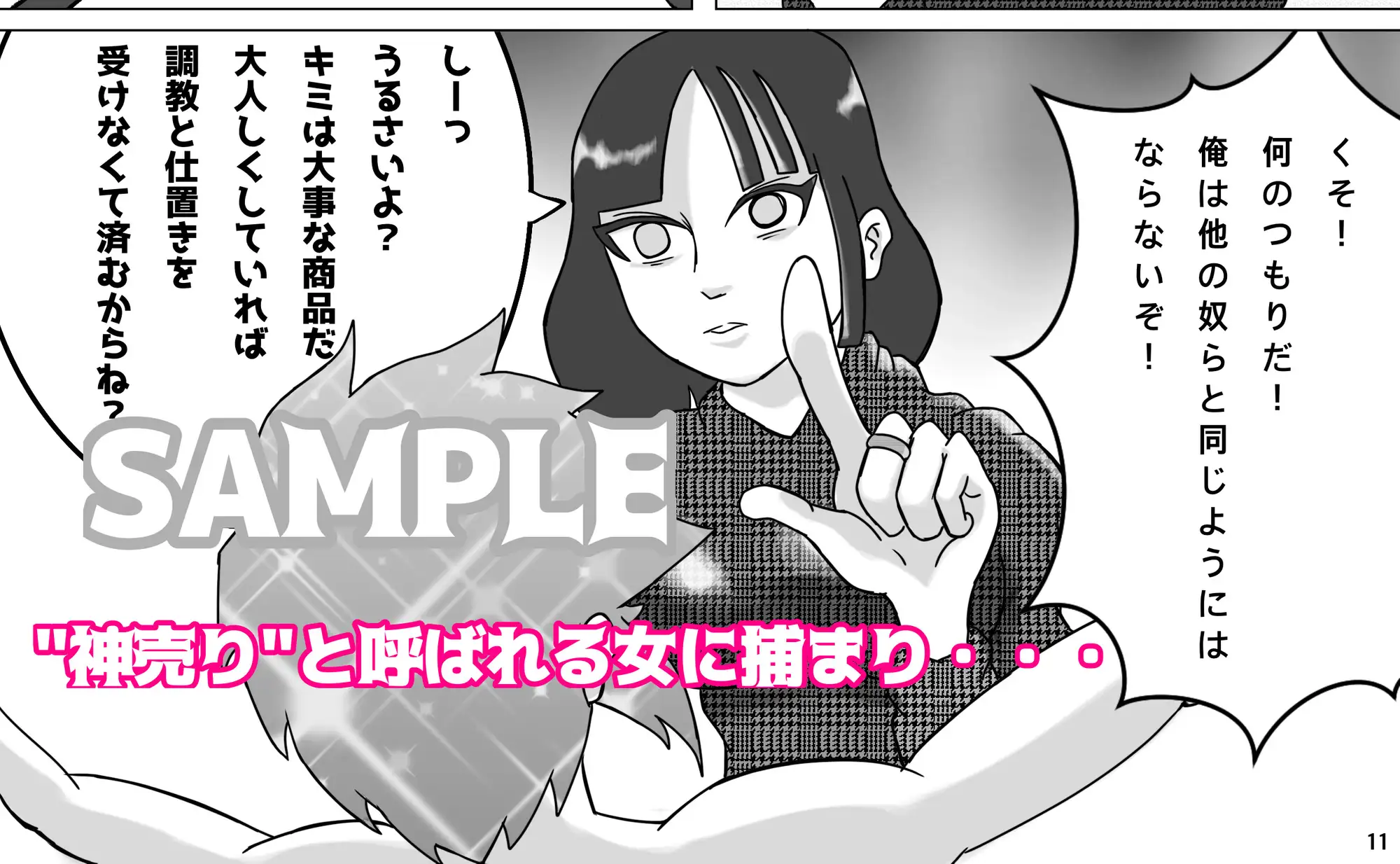 女は捕らえた戦士を卓越した指さばきでのくすぐりの刑にかけ、さらにアソコへの責めで心をへし折ろうと試みる。
