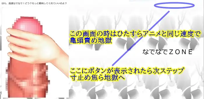 まずは画面のモーションに従って亀頭をなでなでよしよし、亀頭責め地獄。