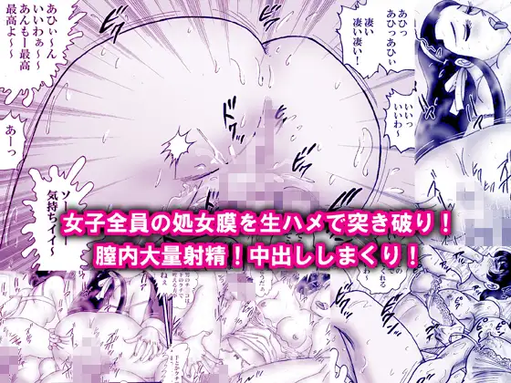 大量処女喪失、膣内射精、中出し、集団連続生ファック中出し、膣内ぶっかけ、陰毛マ○コ