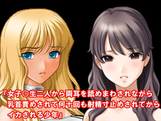 『女子○生二人から両耳を舐めまわされながら乳首責めされて何十回も射精寸止めされてからイカされる少年』