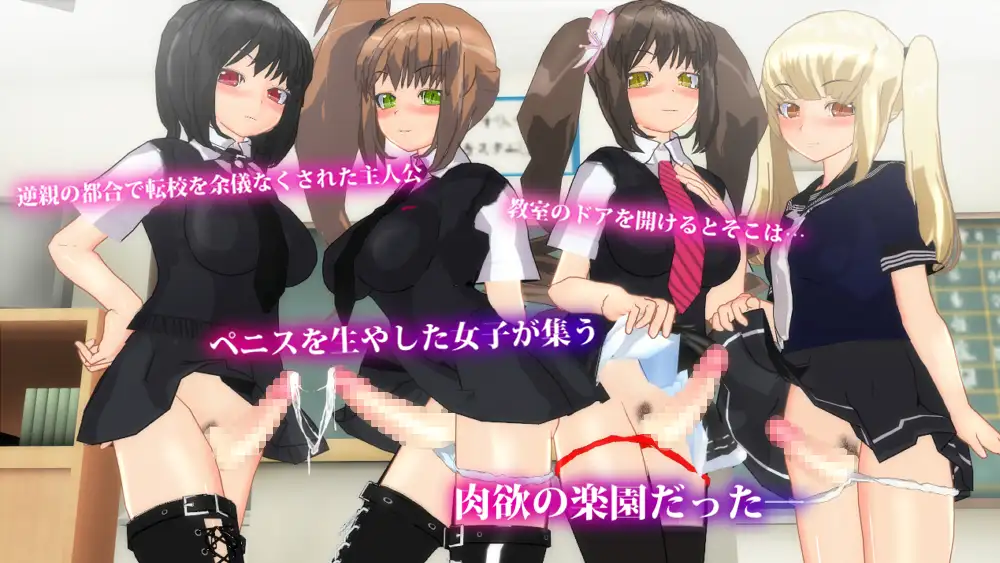 ふたなりっ娘達は我先にと主人公を捕まえ、処女穴に快楽を刻みつける…