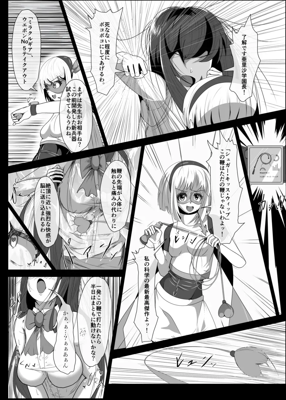 彼女は発明した科学武器や強化コスチューム駆使し、己の正義心に従い様々な悪さをする学園の根源となる人物達を叩き潰してきた。